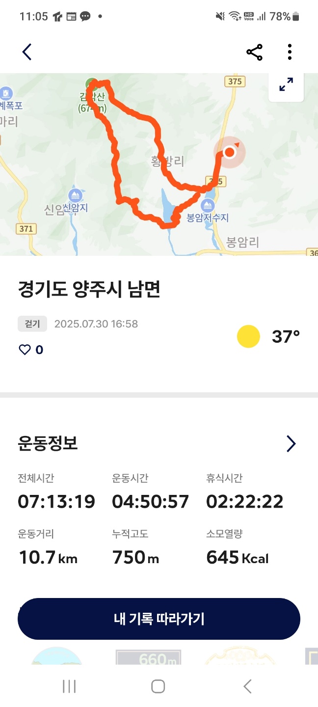 4사람 모임에서 몇 달전부터 낙안재 감악산을 오르고 싶다는 말이 있어 두어달 전에 날을 잡았다. 7월30일 감악산 하늘길을 오르자고. 혼자 사전에 두어차례 올랐던 길이라 크게 힘들지 않으리라.