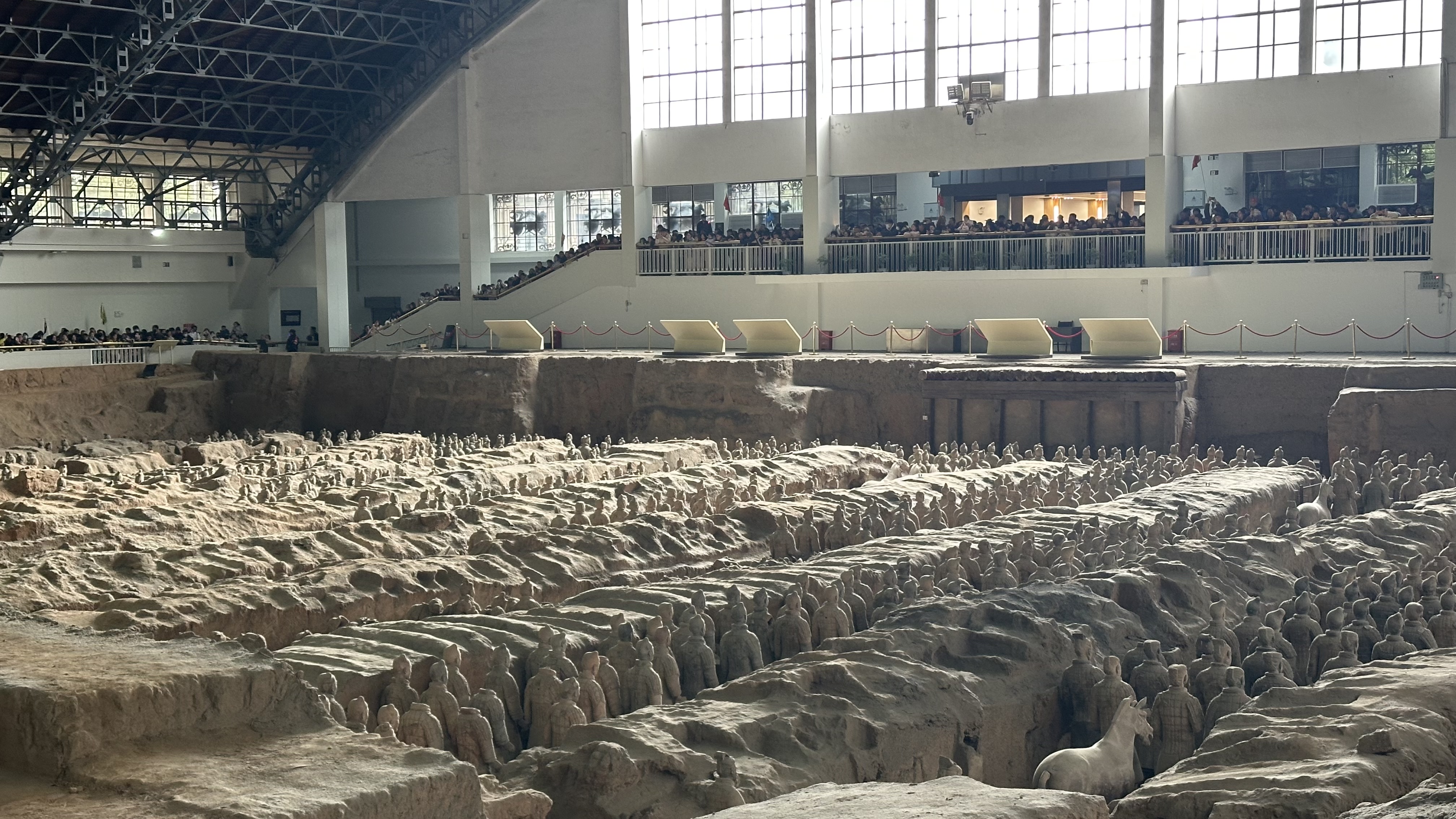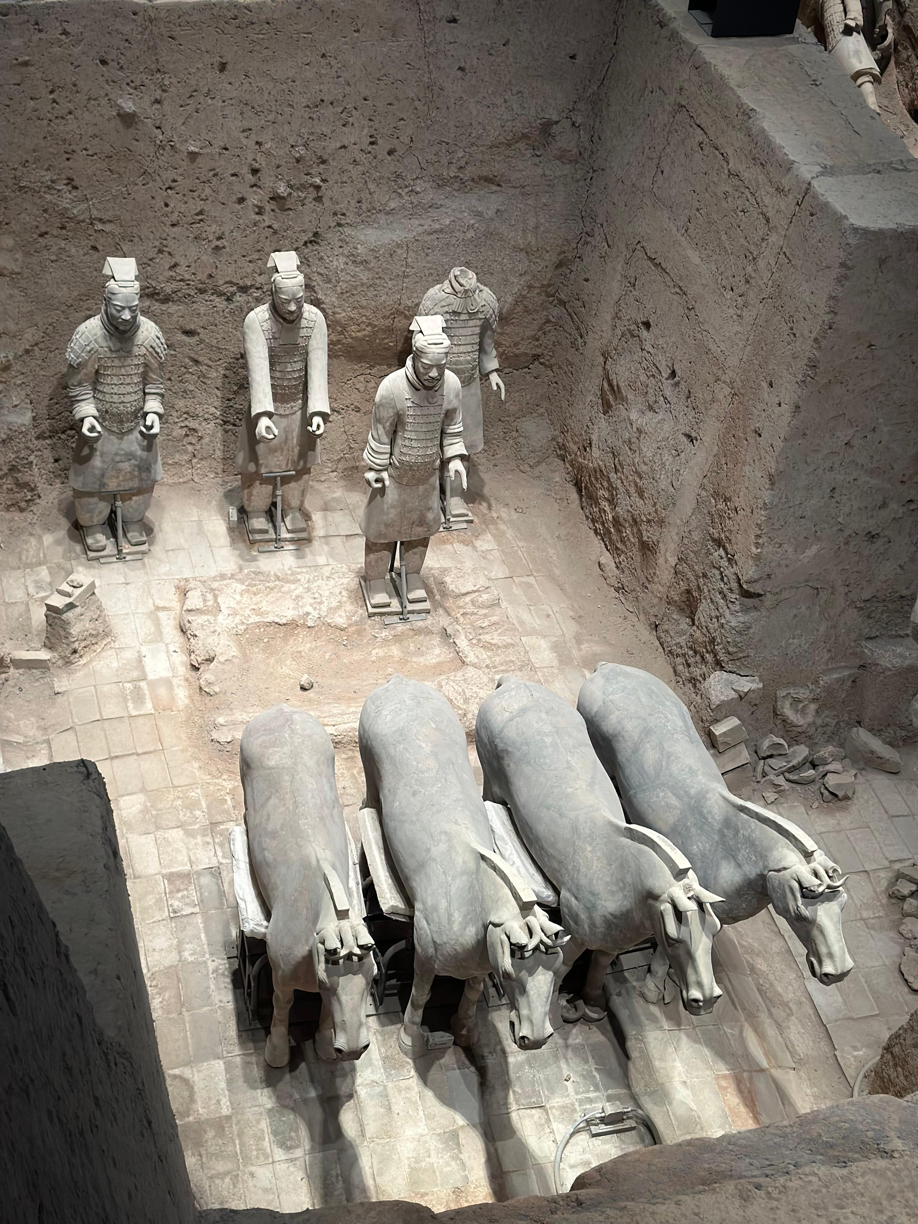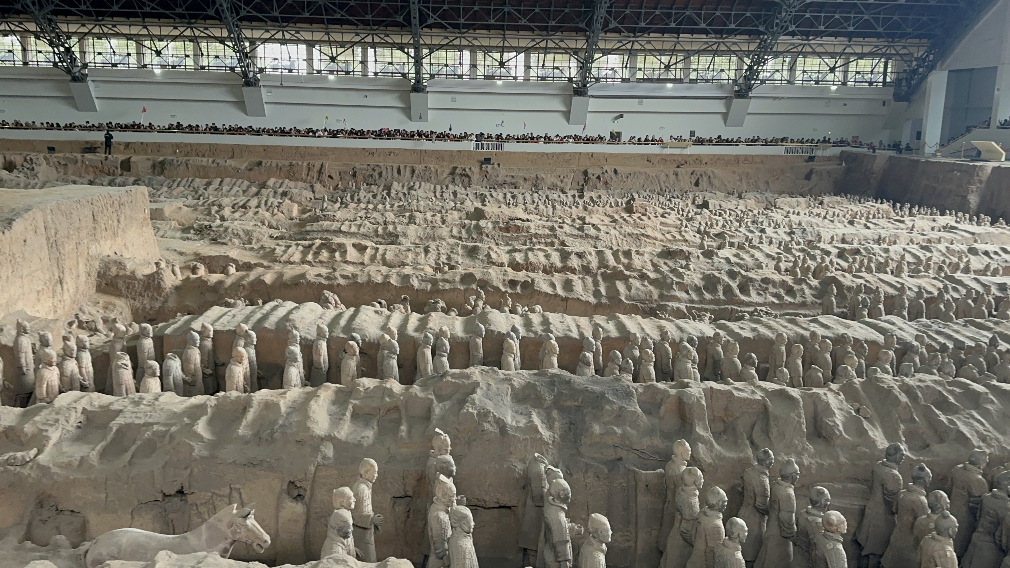 말 그대로 중국을 최초로 통일한 진시황의 무덤과 그 유명한 병마용갱을 관람하였다. 병마용갱의 한 가운데 시황의 무덤을 만들고 그 아래에 병마용갱을 조성하였다. 한마디로 규모가 대단하다. 실물이 아니고 모두 모형.